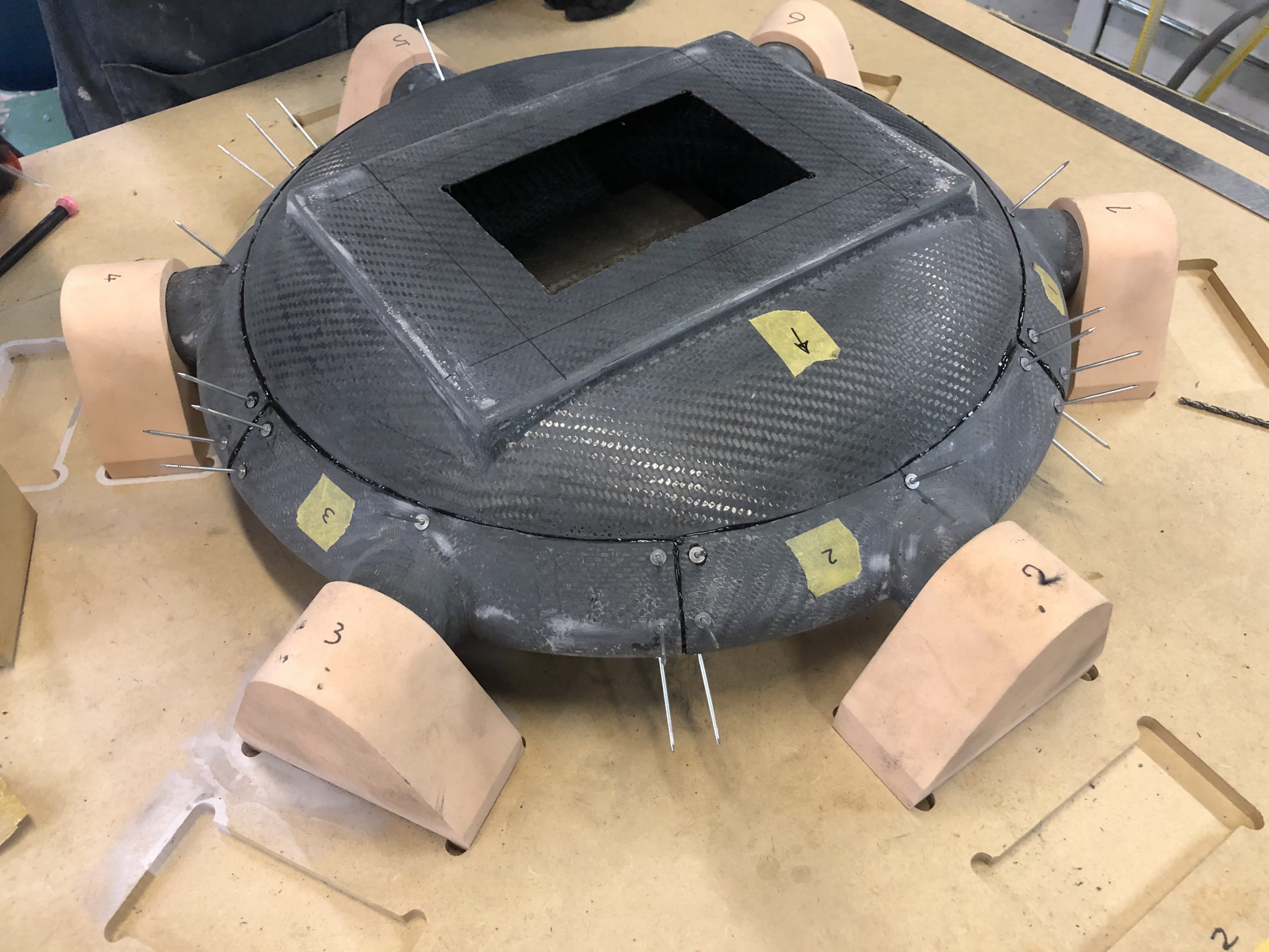 この記事を読んでいる読者の皆様、カーボンが破損した時にどこへ修理に持ち込むかすぐにあてはありますか??お近くに「カーボンボディ直します」という看板があるという方はかなり少ないと思います。カーボンを使った製品も増えてきましたが「修理」となると意外と思いあたりません。カーボンボディの整形そのものは炭素繊維と樹脂を使ったものなのでFRP成形に近い工程になります。そうなると自ずと修理相談する先が浮かんでくるものです。そうです自動車修理や板金屋です。車が好きな方ならぴんとくると思いますがアフターパーツ売られているバンパーはほとんどはFRPです。そこでFRTPンパーの修理を手がけている修理工場にいくつか問い合わせてみましたが、「カーボンの成形はやれなくは無いけど、ドローンのボディーとなると自動車のノウハウは使えるのかちょっと自信がない」と言う回答がほとんどです。振り出しに戻ります。